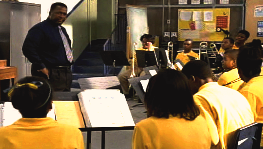Back in Galveston, Nelson's broker finally returns his call and gets an earful from Hidalgo as to why he hasn't sold his stocks yet. "We are shedding like a thousand points on the Dow in the two days since the election. I can't take anymore," a more subdued Nelson tells his broker on the other end of the line before erupting again, "Get me out of this fuckin' market now!" As Nelson pockets his phone, he joins Arnie at a food stand selling Tex-Mex cuisine where Arnie and Nelson's lunch orders wait on the counter. "What do you think happened?" Arnie asks. "It's Obama, I guess," the erstwhile Republican Hidalgo speculates. "Wall Street doesn't like the guy or something, but this shit started two months ago when they let Lehman Brothers go under," Nelson declares, pointing at his cousin for emphasis. Arnie asks how much of a hit Nelson has taken so far from the economic collapse. "Between yesterday and today, what I lost about two months ago — about a million four and climbing," Hidalgo replies. "Don't worry. These are on me," Arnie reassures his cousin about paying for lunch. A somewhat clumsy instrumental version of the children’s gospel classic “This Little Light of Mine” (composed by Harry Dixon Loes around 1920 and recorded in numerous styles and genres with its lyrics.) plays us out of Galveston and into the Theophile Jones Elie band room. Antoine circles the young teens before urging his budding musicians to stop,
